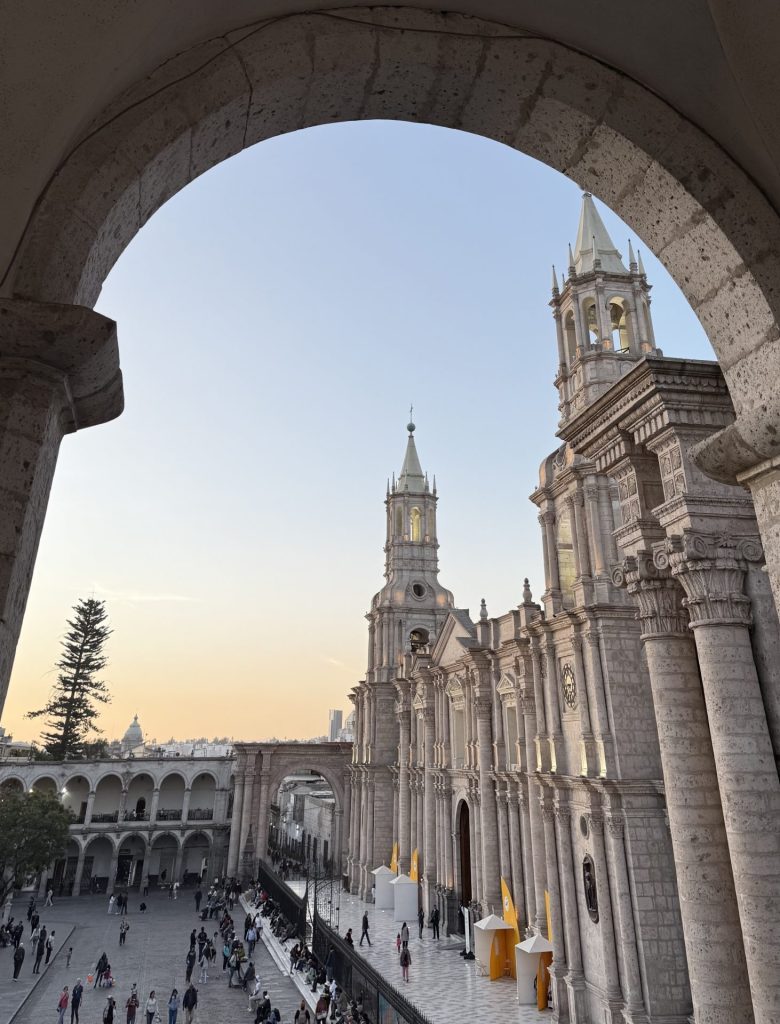 Rano przyjazd do Arequipy i przejazd do hotelu. Po nocnym autobusie dzień zaczniemy spokojnie – czas na śniadanie, odświeżenie się i chwilę odpoczynku, aby nabrać sił przed zwiedzaniem miasta. Na lunch wybierzemy się na lokalny targ, gdzie zjemy proste, tradycyjne dania i spróbujemy Arequipy „od kuchni” – tak, jak robią to mieszkańcy. Będzie też okazja, aby napić się świeżo wyciskanych, lokalnych soków. Po południu zwiedzanie Arequipy z lokalnym przewodnikiem. Poznamy najważniejsze zabytki „Białego Miasta”, jego historię i codzienne życie, spacerując po kolonialnych uliczkach. Dzień zakończymy oglądaniem zachodu słońca z widokiem na główny plac Arequipy oraz majestatyczne wulkany otaczające miasto.